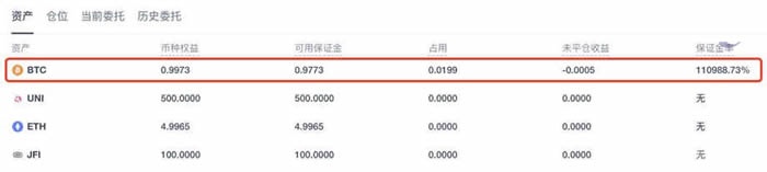 6. 当合约在持仓中,可以在【资产】栏下查看保证金率。