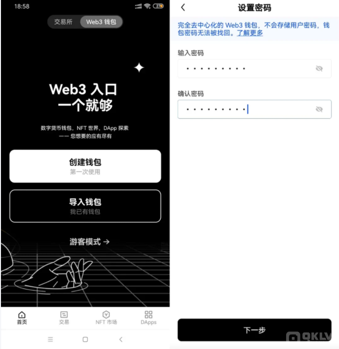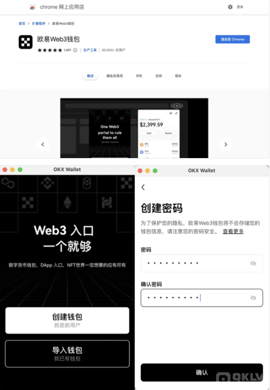 下载【欧易Web3钱包】插件,在弹出的插件窗口中,点击【创建钱包】,完成【创建密码】;