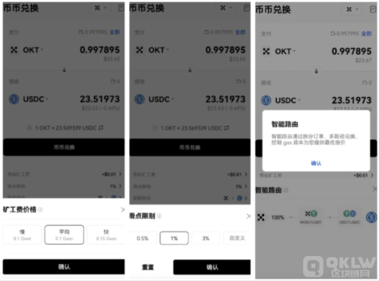 (3)您也可以对矿工费、滑点限制、智能路由进行单独设置。