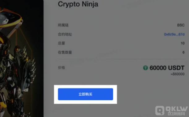 Mint活动为OKX NFT与优质头部项目方合作,集成众多项目合约铸造方法,用户可以通过Web3接入,获得第一时间铸造NFT的机会白名单活动为欧易NFT甄选头部优质项目,对欧易NFT忠实用户倾斜的抢购模式,用户需完成白名单任务来获得抢购资格。2、以抢购活动为例,选择正在出售的NFT专辑,点击【了解详情】。您可以查看该专辑下各NFT的详细信息,包含所属链、NFT合约地址、总量等信息。点击【立即购买】进行抢购。