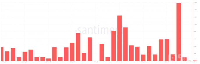 据Santiment 称,截至发稿时,Solana 的 NFT 销售额已达 165 万。图形表示更好地说明了 NFT 数量的峰值。不断增长的交易量很大程度上归功于基于 Solana 的新兴 NFT。随后,影响蓝筹合作和公告可能会将价格推至阻力位48.1925 美元。