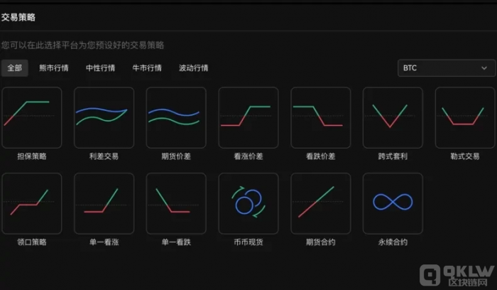 (2)根据平台提供的多种交易策略自动创建组合。为方便用户操作、降低执行成本,欧易也专门设计了一系列的交易策略。该系列策略分别适用于不同市场形势下的交易需求,旨在让用户以最小的成本实现收益最大化。