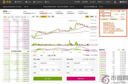 用户进入交易中心的下单区域,参考区域③、④买卖区价格,输入合适的ADA购买价、输入数量,点击买入ADA,完成购买。(卖单同理)